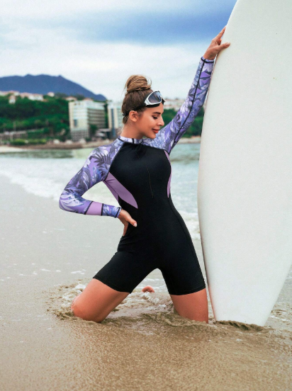 Rashguard de una sola pieza con manga larga tropical