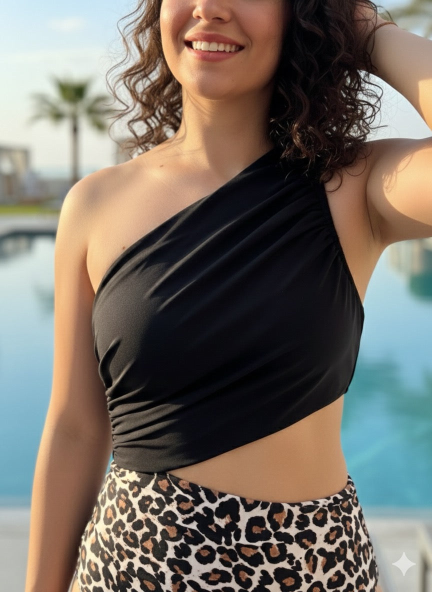 - Detalles: cuello asimetrico