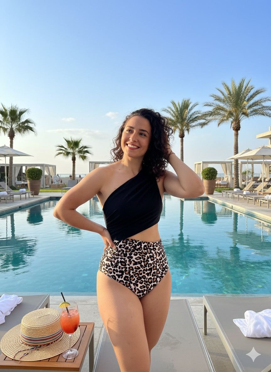 Vestido de baño una pieza estampado de leopardo