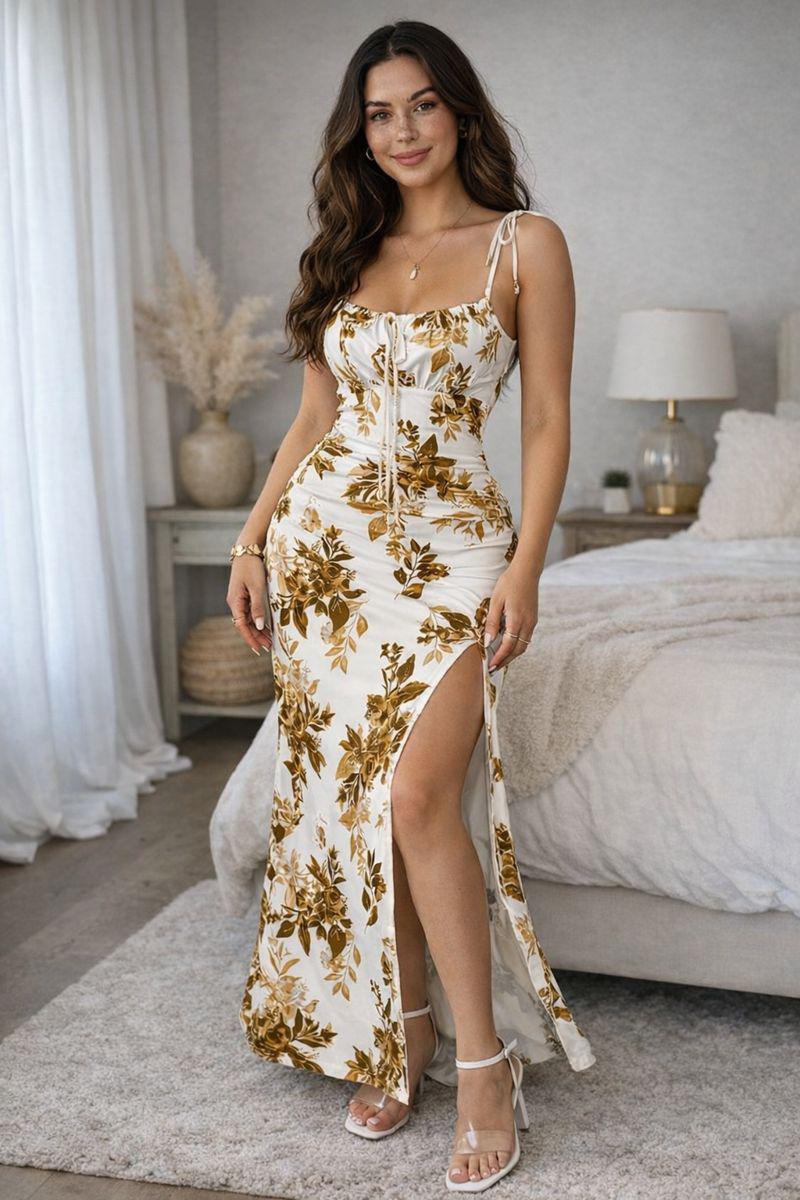 Vestido largo floral con tirantes